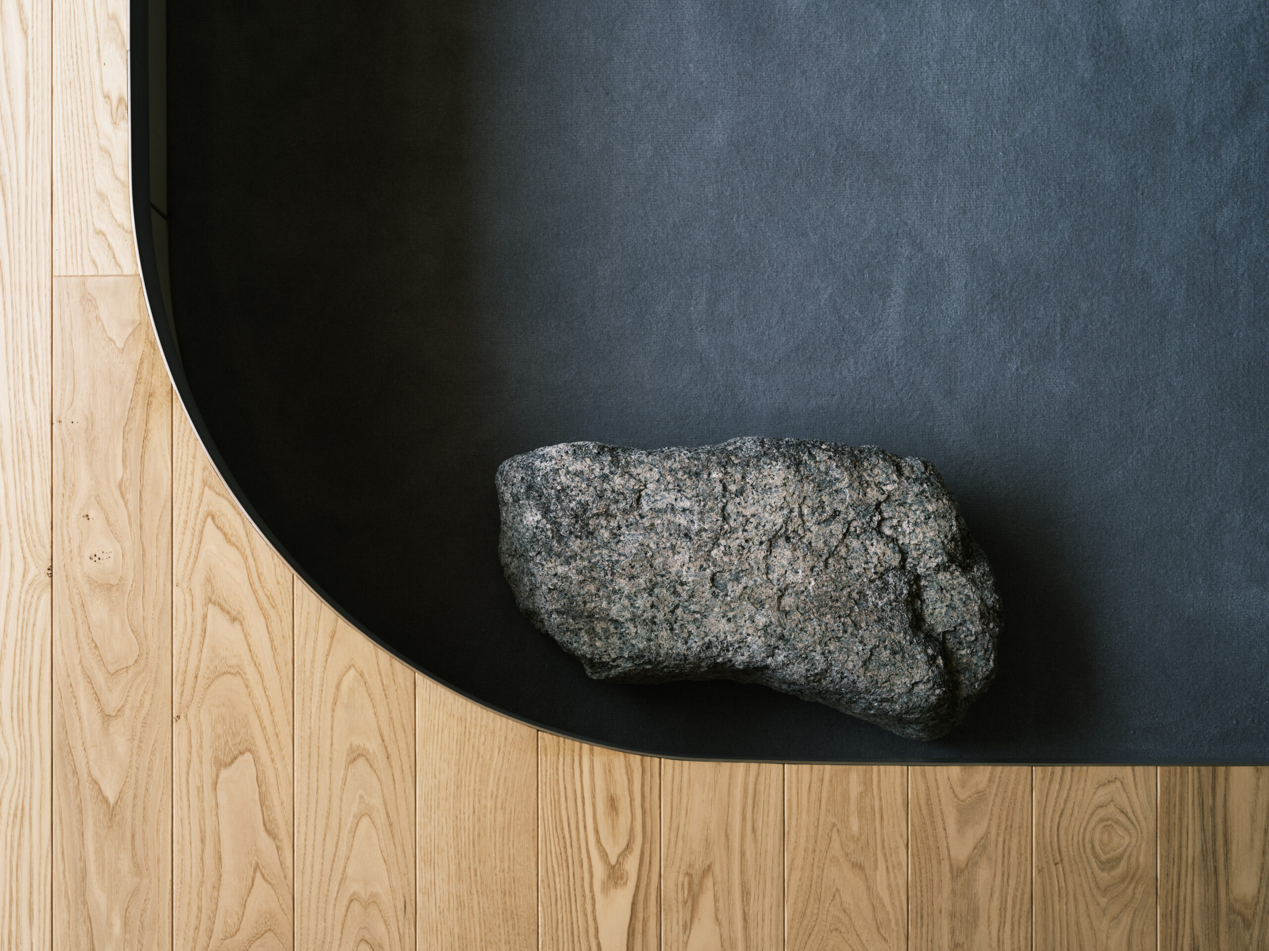 栗材のフロアから一段下がったピットリビングの床はカーペットになっており、ゆったりと過ごす時間を許容してくれる。