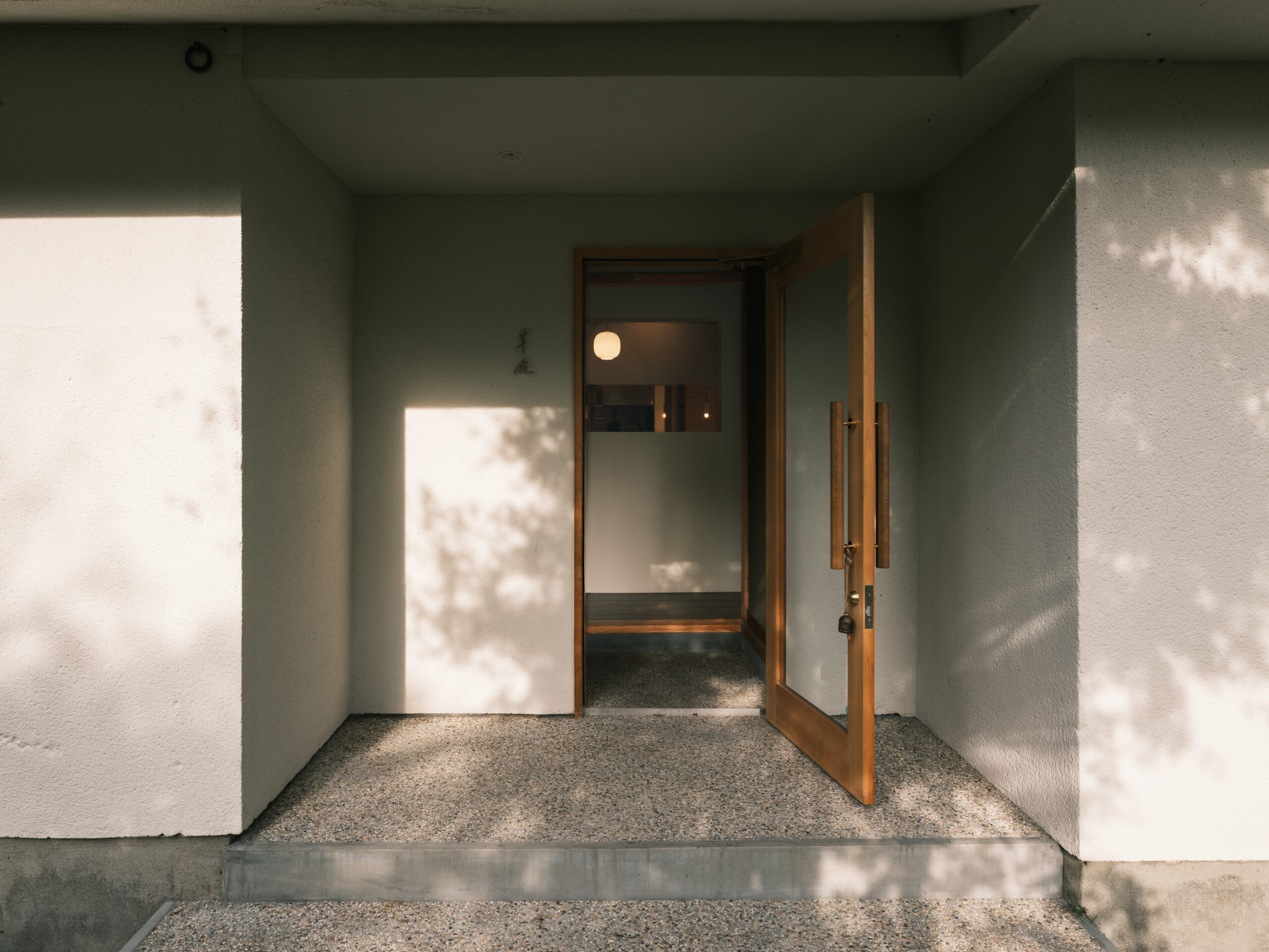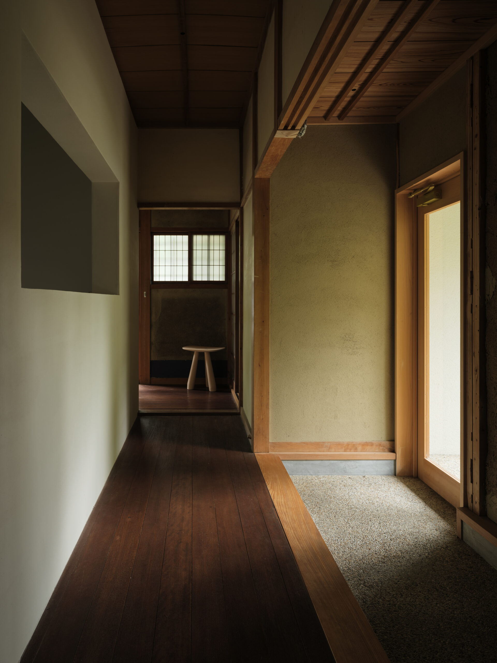エントランスの位置を南側廊下へ変えて、入口から覗いたときに様々なサイズの開口が連続して続き、一番奥に料理をする店主の姿が見える景色を想像した。