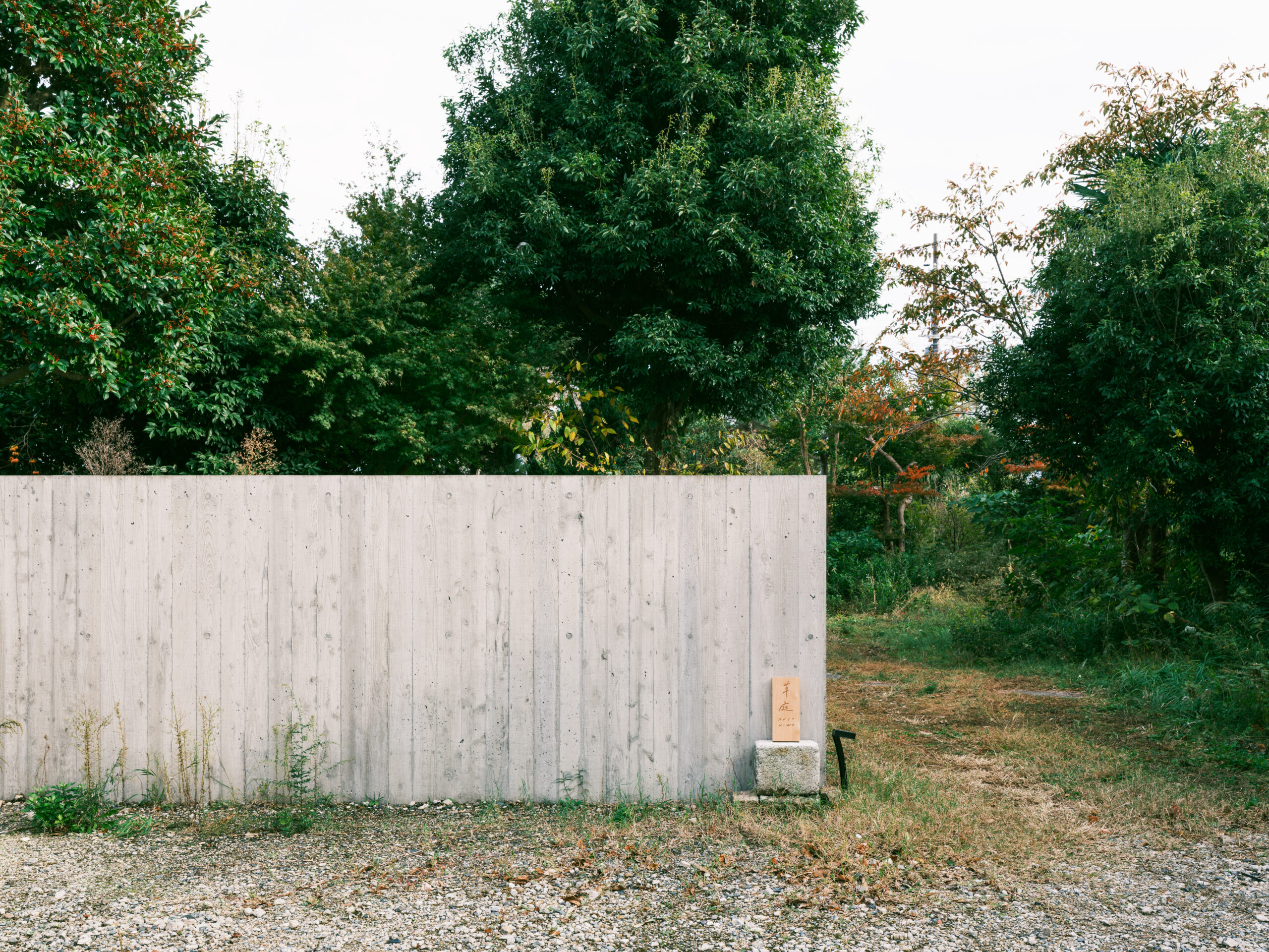 杉型枠でつくったコンクリートの塀を横切り、庭を抜けていくと琵琶湖が見えてくる。